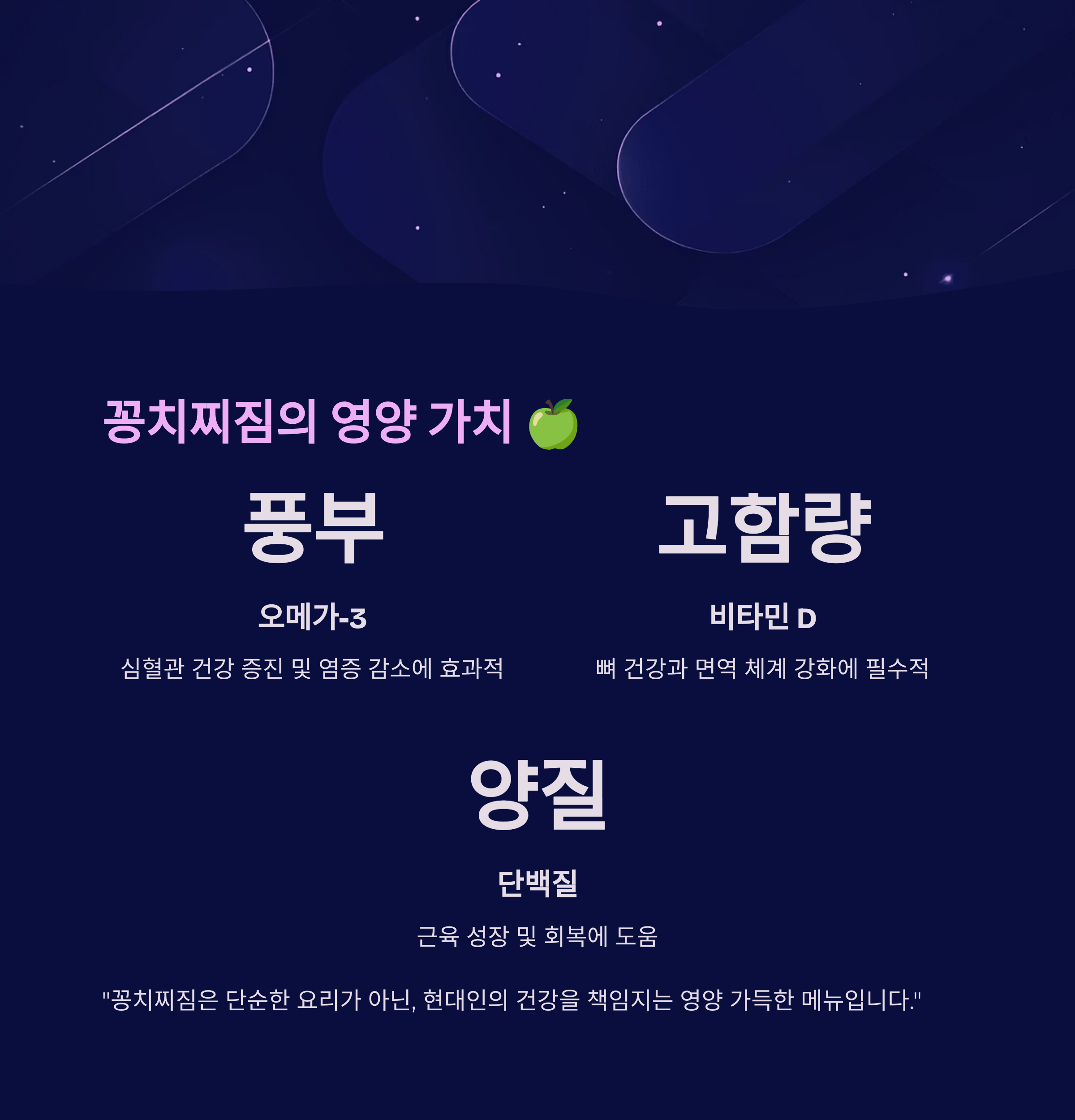 "꽁치찌짐은 단순한 요리가 아닌, 현대인의 건강을 책임지는 영양 가득한 메뉴입니다."